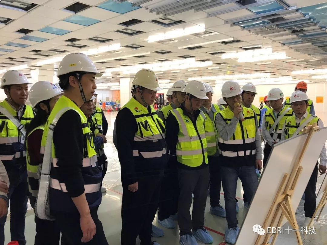 在總包聯(lián)合體的引導下,張素心、陳劍波、唐均君、趙振元、白焰等同志到F1潔凈室、V1變電站、C1動力廠房進行參觀,并聽取了聯(lián)合體總包單位及相關分包單位的匯報。